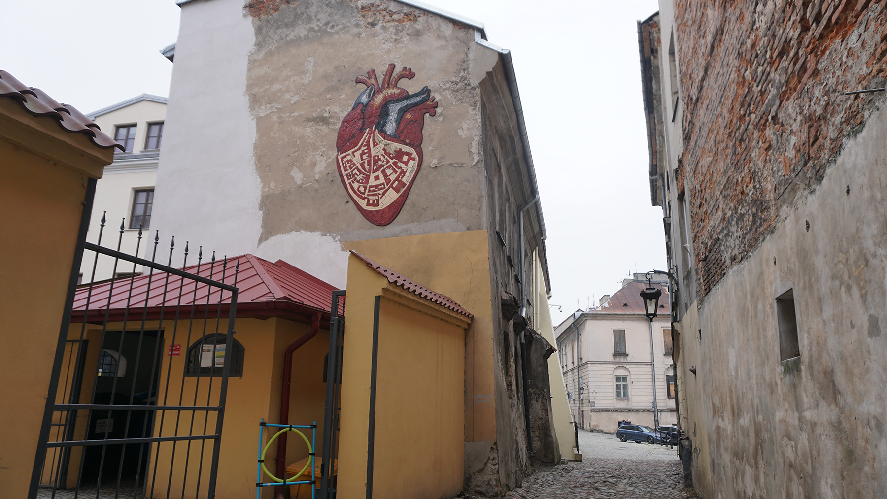 Mozaika „Serce miasta” funkcjonuje w miejscu pozornie drugoplanowym: na uboczu głównych tras, choć w samym centrum historycznego Lublina. Ta lokalizacja wzmacnia sens pracy – obiekt nie narzuca się, lecz ujawnia w rytmie uważnego przechodzenia. Działa jak cichy znak, który przekształca przestrzeń przejścia w punkt zatrzymania i refleksji. Istotnym elementem znaczeniowym jest partycypacyjny charakter realizacji. Wspólne tworzenie mozaiki sprawia, że obiekt nie jest wyłącznie gestem artystycznym, lecz materialnym śladem relacji społecznych. Praca nie dominuje historycznej tkanki miasta, lecz zrasta się z nią, wpisując się w jej skalę, fakturę i tempo codziennego użytkowania. „Serce miasta” pokazuje, że sztuka publiczna może działać poprzez subtelność – wzmacniać tożsamość miejsca bez spektakularnych gestów, a jednocześnie budować emocjonalną więź między miastem a jego użytkownikami.