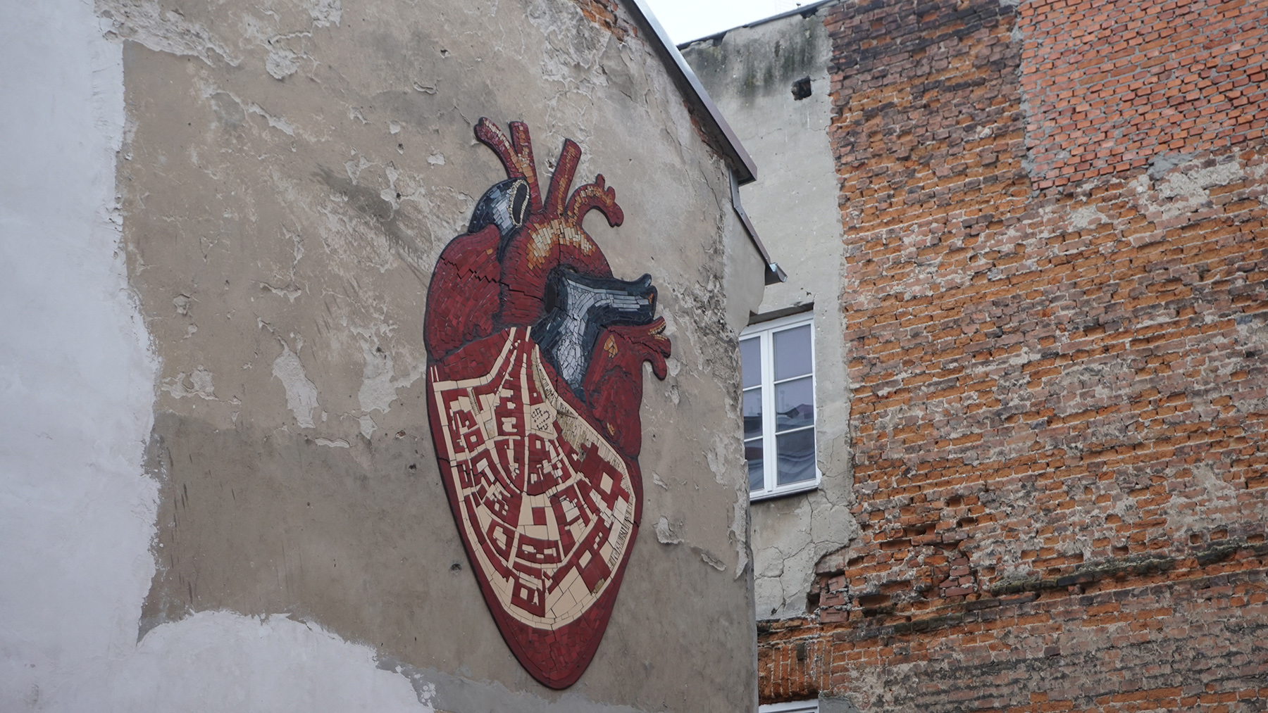 Mozaika „Serce miasta” autorstwa Pauliny Garbiec przedstawia plan Starego Miasta w Lublinie wpisany w kształt ludzkiego serca. Praca operuje czytelną metaforą miasta jako organizmu żywego, w którym układ urbanistyczny odpowiada sieci relacji społecznych, emocji i wspólnotowych powiązań. Forma mozaiki – trwała, manualna i pracochłonna – wzmacnia znaczenie dzieła jako obiektu zakorzenionego w materii miejsca. Realizacja powstała w czerwcu 2025 roku w ramach Nocy Kultury w Lublinie, odbywającej się pod hasłem „MiastoRelacje”, jako część projektu „Mozaikowe miasto” Fundacji Kultury Enter, dofinansowanego ze środków Gminy Lublin. Praca miała charakter partycypacyjny – w procesie jej tworzenia uczestniczyli wolontariusze, współpracujący bezpośrednio z artystką. Mozaika została umieszczona na bocznej elewacji kamienicy przy ul. Ku Farze, w przestrzeni o charakterze przejściowym, zlokalizowanej w bezpośrednim sąsiedztwie głównych ciągów turystycznych Starego Miasta, a jednocześnie poza intensywnym ruchem pieszym. Po zakończeniu festiwalu obiekt pozostał trwałym elementem przestrzeni publicznej. Odbiór realizacji był bardzo pozytywny – mozaika stała się rozpoznawalnym punktem wydarzenia, przyciągając uwagę mieszkańców i turystów.